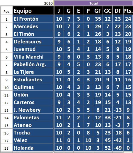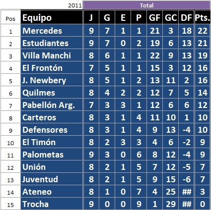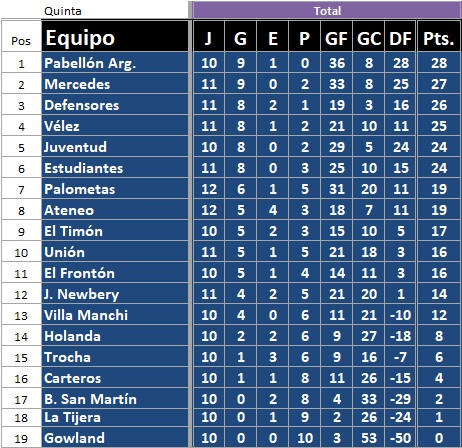 Sábado 22 de noviembre, cancha Liga Mercedina