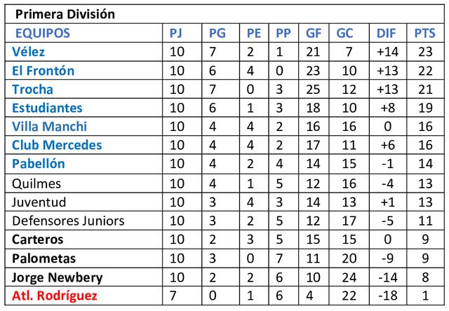21:00 hs. Juventud Vs. El Frontón -PENDIENTE-