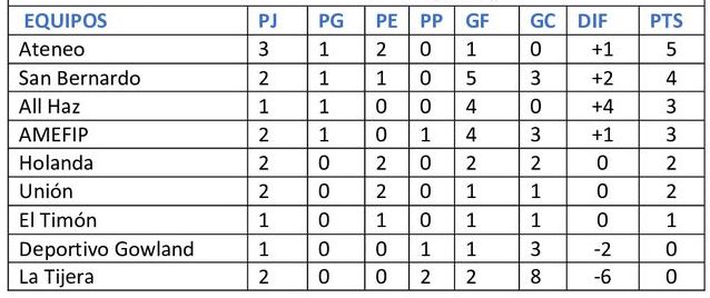 Resultados de Reserva – Segunda fecha