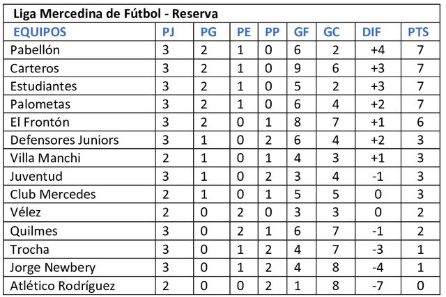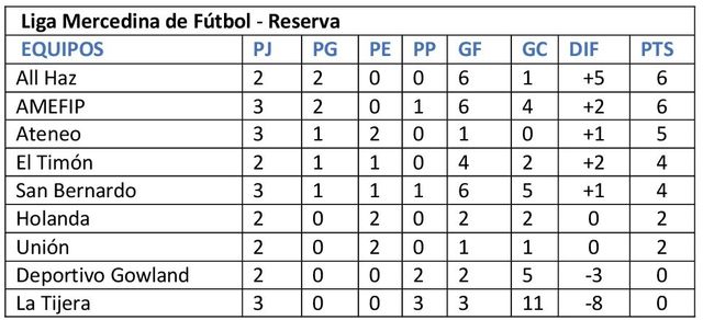Resultados – Reserva – cuarta fecha