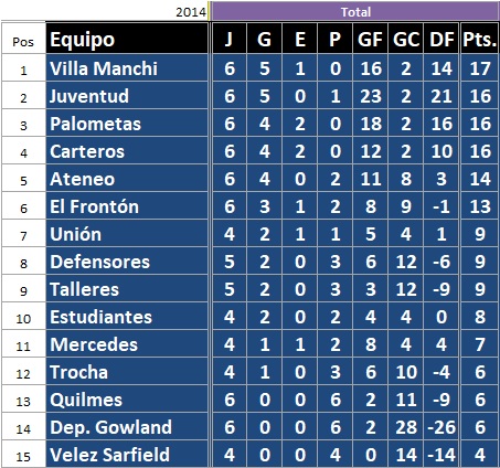 Carteros 6 – Talleres 0
